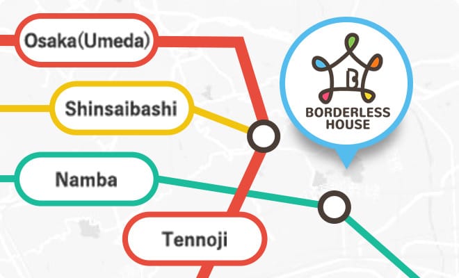 보더리스 하우스 오사카 타마츠쿠리는 이마리역에서 도보 7분, 타마츠쿠리역에서 도보 12분의 좋은 입지. 가까운 역에서 오사카 시내 주요 역까지는 어디에서나 환승 없이 15분권 내! 하우스 바로 옆에는 편의점이 있어 도보 10분 이내에 상점가・슈퍼・은행・등 생활에 필요한 환경이 모두 갖추어져 있습니다!